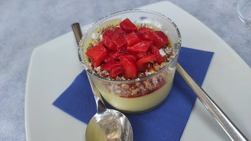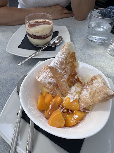 Prima volta che pranzo in questo stupendo locale e in città ad avere una tale freschezza sia di piatti che per la temperatura ( 30 gradi oggi, e si stava da dio in ombra con un bel venticello ) è molto raro. Abbiamo preso come antipasto: Un antipasto misto che ha scelto mia sorella e debbo dire che era leggero e gustosissimo! Non mi ha fatto assaggiare i sardoni perché erano così buoni che si è dimenticata di darmene uno 🤣, io ho preso la tartare di tonno, servita con l'avocado e i crostini, buonissima, leggera non è piccante se a qualcuno magari non piace che mettano delle spezie, è semplice e gustosa, tranquilli sono belle porzioni😉. Per primo: Mia sorella ha ordinato i ravioli allo zafferano, curcuma e col brandy, si presentano veramente bene e ti invogliano a ordinarli. Il gusto dello zafferano non compre né i gamberi né il ripieno è tutto molto bilanciato. Per secondo: Io e mio nonno abbiamo preso i calamari ai ferri col contorno e debbo dire il vero che i calamari che ho mangiato sono stati i più buoni, non erano per niente asciutti, non erano gommosi erano semplicemente perfetti,vengono accompagnati con delle verdure spadellate tra le quali ho riconosciuto, melanzane, carote, pomodori e non vorrei sbagliare ma dei fagiolini verdi e penso del cavolo 😅, assieme alle verdure viene servita un ottima polenta, quindi se non vi piace vi prego di avvisare perché è veramente un spreco lasciarla nel piatto🙏🏻. Come dolce ci siamo divise la panna cotta alla vaniglia con il crumble salato e fragole col limone che sono state la ciliegina sulla torta per completare un ottimo pranzo! Il locale si presenta veramente bene, è stato ristrutturato e rimodernato in un modo impeccabile e irriconoscibile. Il personale sia di sala che di cucina sono stati molto cordiali e gentili, hanno curato tutto per offrire il miglior servizio per i clienti, posso solo dire che ci ritornerò di sicuro, Alessandro per esempio, è stato il nostro cameriere e che ha tenuto una particolare attenzione a tutto ciò di cui necessitavamo e iera anche una splendida mula che è gentilissima e veloce nel servirvi, vi consiglio vivamente di provare se siete nei paraggi non rimarrete per niente delusi, anzi penso che vi soddisferanno altamente come hanno soddisfatto noi💜. Ci siamo molto divertiti e siamo stati...