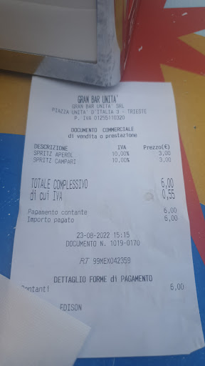 It's a perfect location to enjoy an evening out with some Aperols and/or cocktails, but also for a warm morning coffee. They advertise the cheapest espresso on the Trieste main square and they are not wrong.