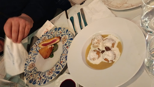 Interior is very light and white,positive.Stuff were polite.We were waiting for 1 appetizer around 30 min and for the main course 1hour because there were just 2 waiters.money savers! We saw that one man didnt like the meal which he got and he returned his meal. Food is served in a bit sophisticated way ( but not completely sophisticated).Porsions are not big and they dont have special tastes. I can not say that food is really bad ( for comparison what is really bad,I mean pizza with bad pastry or some meal where important ingredients are not done in the right way) but food dont have special and good taste.We have ordered one appetizer like Gabriele M. who made comment before and posted a photo with those raw fish. My main course were fettuccine with pistachio and raw tuna.It was tasteless. Like cooked pasta with olive oil where they separately fried 1 min a bit of tuna with pistachio.My husband have had a black rissoto with ink of cuttlefish. It was very little rissoto and was served in a flat plate.It was almost no fish and was not enough ink.But served with a piece of gold folia. I am eating it very often when I visit Dalmatia ( season for cuttlefish is feb- march) and this rissoto is very black with so much ink that you look scary while you are eating it..and with a lot of fish.This is a real rissoto. And for the information,we are travelling a lot and visiting restaurants with really good food which has special taste.So,if you are one of these people,you will not like this restaurant. In Trieste sophisticated restaurants are not good at all.There are few reasons for this.Just visit normal restaurants with traditional food.These ones are good. I see that the owner like to read our comments here and to thanx those ones which are positive and which he likes .If you are reading it,show that you are a charachter and at least when you seenwhich are not the best comments for you ,at least say sorry,we will do our best in the future to improve.Real people do like that.Because,customer is always RIGHT! It is the first lesson in...