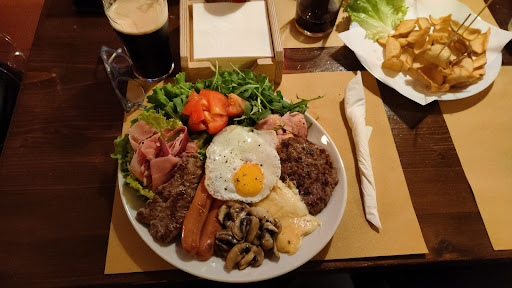 Read moreGli interni del locale sono molto angusti: una prima saletta di fronte al bancone e dopo 4 o 5 scalini un corridoio con arredi e pittura delle pareti stile anni "80, tavoli e panche a 4 o 6 posti in discreto stato di manutenzione. Pessima illuminazione (orrende lampadari stile cucina della nonna e lampadine a risparmio energetico ma troppo forti per una saletta del genere). Buona offerta di birre e panini con prezzi intorno ai 5/6euro a pezzo. Per i c.d. piatti (essenzialmente petto di pollo accompagnato da vari condimenti) si pagano 11/12 euro. Quello che più di tutto lascia perplessi è la lentezza nel servizio e la poca affabilità di chi serve i tavoli che, dopo oltre un'ora di attesa per tre panini (nonostante avessimo prenotato qualche ora prima per telefono) quando abbiamo chiesto notizie sul nostro ordine ci ha detto sbrigativamente che sarebbero passati all'incirca "venti minuti abbondanti", ma che se volevamo potevamo anche andare via.... Son passati ancora 35 minuti, abbiamo mangiato i nostri panini, ma non credo che ci...