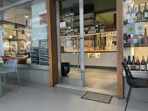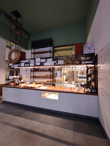 Nice and cozy bakery& café shop. With a minimalist interior design it offers quite wide selection of bakery products that you can take away or enjoy at the place in one of the small tables displaced right on the corner. The quality of food and coffee is high and you can understand it straight after your first bite or sip. Great customer care with a complementary glass bottle of water if you sit. From what I've understood, you can pick up it "still" or "sparkling". It is not industrial water but a filtered one with a proper device. Nice fact is that the counter is connected with the laboratory, so you can actually see somehow the backstage of the bakery. Everything looks clean and tidy.
