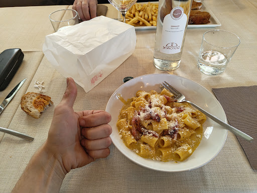Excellent restaurant. I had a wonderful lunch here. In Trieste, in the city center, it is very hard to eat right on the sea, unless you have a car and drive on the SS14 going out of the city towards the Vittoria lighthouse, where there starts to be many seaside restaurants. As a compromise, (you don't have a car and you are restricted to eat in the city center) you can eat in their outside terrace, where you will have a view of the Trieste porto - harbor, where the fresh sea breeze will add to your culinary experience. To start, I had the "ceviche di branzo" seabass appetizer, which was served in a coconut milk with mango. It was truly original and amazing. For my first plate, I had the spaghetti with mussels with bottarga (cured fish roe) with a great glass of white wine To end my fantastic lunch, I had a chocolate mousse, with again coconut and mango. It was a truly enjoyable experience and I will definitely return to eat here...