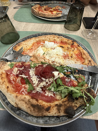 Probably the best pizza I had this year, we had to come again during a week holiday. Neapolitan Style, but you can ask for different dough, such as wholemeal or charcoal yeasted,or cooking style (crunchy, romana, etc). Nice place to have dinner with friends, very wide selection of ingredients and toppings. The first time I had a BRG and second one I asked for a tuna and onion pizza with extra rocket and olives.... super: the pizza itself has a light texture, the toppings are generous and good quality. For dessert we had a special "galaptika" crepe with Nutella and pistacchio, on both of our visits. Nice beer selection and interesting amari. Will be definitely recommending...