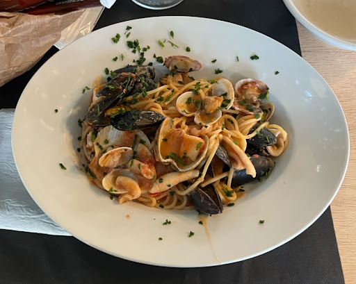 Read moreFriendly staff, nice place, good location across the beach and park. We had baked oratta and sea bass in cartoccio. Both fish were small, very plain and underseasoned, as well as the sidedishes. The sea bass baked in paper was surprisingly dry, and not even the whole fish but fillet of only one half. All in all, pricey but...