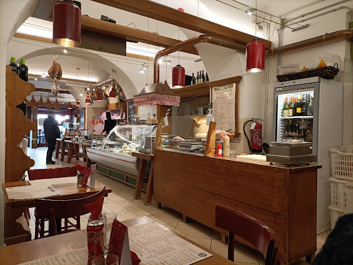 Read moreFour of us came at lunch time, approx. 13h without a reservation. Took a high table along side the wall across the counter. Had a couple of carafes of house wine (Friulano), Parmegiano and ham with horseraddish, mustard and deep fried eggplant in a fresh role. Great meal, great place to watch the local run in, order, eat or take out. The boss in the red sweater is an original! Great place for...
