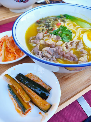 First time in Trieste I've had a Ramen that actually recall the original tastes of the Chinese authentic recipe. My choice was the sweet&sour beef ramen with some hint of spicy chili. Since we were a table of four persons I could try the tastes of the other dishes as well, like the grilled dumplings, pork cutlet "japanese katsudon style", WonTon soup and the Taiwan beef ramen. All the food is really good, the noodles are freshly handmade by the restaurant. Nice location, staff extremely polite, I give 4 stars only because they did wrong the timings a bit and caused a quite long delay for 2 dishes. This didn't ruin our experience, because the people working there are extremely nice and friendly ( at least the ones that did served us). Definitely the best Chinese/asian food experience that you might have in...