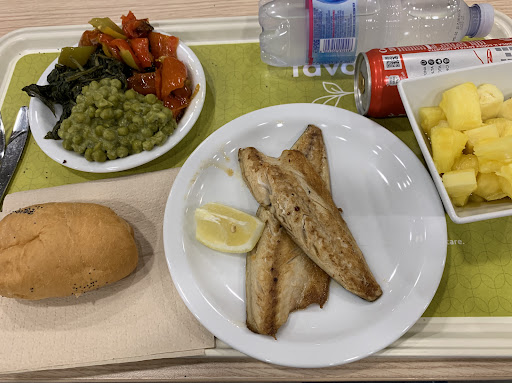 Vado a pranzo ogni giorno e per essere una mensa si mangia molto bene. Si riesce a trovare sempre qualcosa di buono perché ci sono almeno 3 primi del giorno, una varietà di secondi, contorni e dessert. Possibilità di prendere anche una pizza a scelta fatte sul momento. In questo periodo mi pandemia disinfettano tutti i tavoli ed appena ti siedi vengono a mettere un dischetto con scritto "tavolo non utilizzabile", così quando chi finisce, il tavolo lasciato libero non viene occupato da altri prima di essere disinfettato. Il personale è...