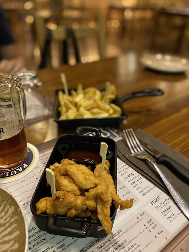 Sono capitata in questo bistrot quasi per caso, in una serata caldissima, giusto per stuzzicare qualcosa di veloce e bere una buona birra fresca, prima di rientrare. La prima impressione è stata buona sia per l’accoglienza dei ragazzi sia per l’ordine e la pulizia che regnavano fra i tavoli all’aperto e quelli nella saletta interna… ma anche per il secchiello di arachidi che ci hanno servito appena seduti. :) Il menu è quello tipico dei pub (stuzzicherie, hamburger, insalate, crostoni, dolci, oltre ad una buona selezione di birre), ma c’è anche una buona proposta di taglieri, primi e secondi piatti che non ho assaggiato, ma dei quali ho potuto apprezzare aspetto esteriore e impiattamento, mentre venivano serviti agli altri tavoli. Accompagnati da una buona birra alla spina rossa, ho scelto di provare un hamburger, patatine fritte “dippers” e straccetti di pollo impanati e fritti, accompagnati da salsa barbecue. Cottura della carne giustissima, ingredienti di buona qualità, tempi di attesa più che ragionevoli. Sebbene io continui a pensare che 9/10€ per un hamburger - sebbene di buona qualità - siano un po’ tanti, di recente ho riscontrato che questo è il costo medio nella maggior parte dei pub. Pertanto, direi che i prezzi sono in linea con questo segmento di locali. Un’ulteriore nota di merito va alla musica in sottofondo: pop anni 70, la mia preferita! :) Tornerò per assaggiare...