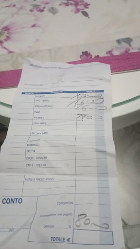 Read moreIl locale è molto carino, la pizza molto buona peccato che non avevamo ancora finito di mangiare la pizza che è arrivato il conto senza che lo avessimo chiesto. Avremmo gradito un dolce o altro e quindi abbiamo fatto notare che consegnandoci il conto, mentre avevamo la pizza ancora nel piatto, ci avevano messo fretta. Il personale si è scusato dicendo che avevano sbagliato il tavolo e che il conto non era per noi, salvo che al momento di pagare ci è stata consegnata la stessa ricevuta. Proprio un peccato questa caduta di stile per una pizzeria...