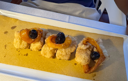 This place literally has it all. From the moment we stopped by they quickly attended to us and sat us on the beautiful deck. The waiter was so friendly helping us with recommendations from the area and seemed genuinely happy to be serving us despite needing some english translation on the phone. For starters he recommended the seafood salad to go along with our tartare and both were absolutely delicious. The tartare was some of the best I’ve ever had with a unique seasoning and bursting with flavor. The seafood salad was very unique (although maybe more common in italy) and was very refreshing after a hot day. All of the seafood was cooked perfectly. We then tried the anchovy eggplant pasta which I never would have ordered myself as I dont like anchovies. But the waiter was right, it was delicious! Unlike in the US, the anchovy was not as extreme salty/fishy as the canned ones although still salty, it was very nice to try. The spaghetti was filled with sauce coating every noodle, and they plated it separately for the 2 of us despite only ordering 1. For the 3rd course we tried the seared octopus and the fried calabrian cod. Again both were wonderful but I especially loved the octopus, it was so flavorful and the perfect texture. They absolutely know how to cook their seafood to perfection. In addition to taste everything looked like it could be in an art gallery. It was so beautifully plated. Finally, for dessert we had pistachio gelato and we were brought a small sample of limoncello on the house. Everything was so wonderful, I wish I lived in Tropea so I could go here...