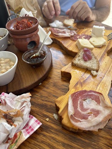 È da diverso tempo (nonostante da diversi anni che lo frequento da quando vengo a Tropea per le vacanze) che volevo fare la recensione di questo posto. Il personale è gentile, cortese e professionale (ahimè negli ultimi anni non è scontato a Tropea visto che il "livello" è sceso e alcuni ristoratori sono diventati anche supponenti, arroganti e, delle volte, maleducati (come mi è capitato di recente al ristorante "Carpe Diem" 😕 di Tropea - agosto 2021 -). La persona che è alla cassa certamente potrei definirla il "porta bandiera" 🏅 del "Borgo dei Borghi" che l'amministrazione comunale cerca di "pubblicizzare" e "sponsorizzare" per la gentilezza e la qualità dei prodotti utilizzati nel panino. Il locale si "sviluppa" praticamente all'esterno poiché all'interno al più ci stanno alcuni tavoli (4/6). Ti fanno accomodare all'esterno su dei tavoli a forma di botte (molto particolari e comodi) ve ne sono diversi ... l'attesa è abbastanza rapida visto che in genere si consumano pasti veloci (panino, tagliere, etc.). Il mio panino preferito è il numero 1 cioè quello con l'anduja. Provatelo! I prezzi sono contenuti i panini vengono in media 5 euro. All'interno si possono acquistare i prodotti locali ed io, come al solito, ho comprato l'anduja di Spilinga ... ottima ... la loro; non sono tutte uguali posso assicurarlo anche se prodotte tutte a Spilinga. Come giudizio complessivo secondo me è da CINQUE STELLE e LODE. Da provare assolutamente! Appena ritornerò a Tropea...