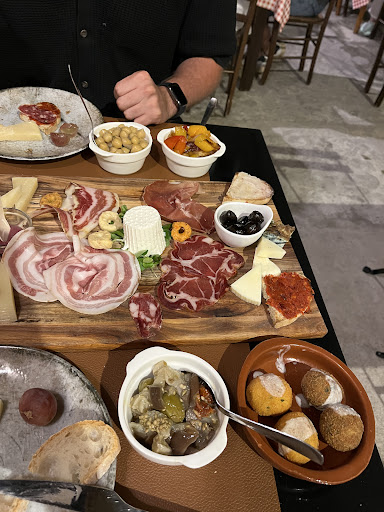 We are so glad we stumbled across this little eatery!! The food and service were impeccable - we could not find a single fault. The menu is somewhat limited but I think this is better as the quality of what is served is an absolute 10/10. The menu showcases a variety of Calabrese foods and ingredients, all sourced locally in Calabria. The chef came out and chatted with us about the sourcing of meats and cheeses when we asked. I choose not to eat meat, but my partner loves it. We asked for “The Platter” for 2 people and when I explained that I wanted meat only for 1 person to the waitress, the chef came out and asked me if I was allergic, if I would prefer more cheeses etc to ensure we had exactly what we wanted. He even offered to put the cheese on a seperate platter to the meats if needed. They were SO kind and accomodating. My partner had ample meat for 1 person and I got extra cheeses and sides. We were so impressed by this as usually he ends up just eating my share 😅 We ended the evening with an amaro (bitters) which the waitress kindly went through all the different types and which ones she recommended as we had no idea.