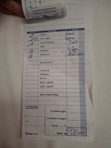Già all’ingresso notiamo che i prezzi esposti all’esterno non corrispondono a quelli presenti nel menù al tavolo, decisamente più alti. Un primo segnale di scarsa trasparenza.