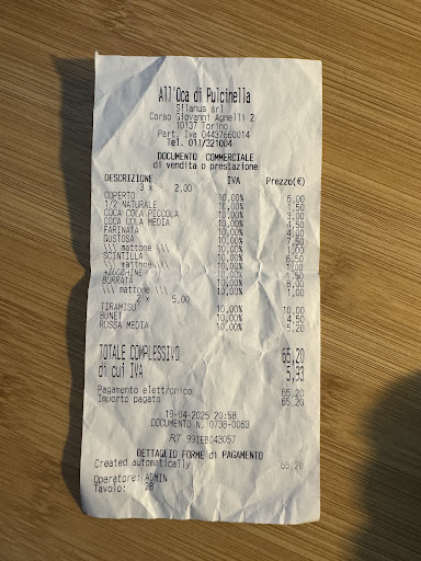 ESPERIENZA MOLTO DELUDENTE !!! Ordinato 3 pizze d asporto tramite piattaforma Glovo , arrivate in orario come comunicato infatti non è un problema della piattaforma , ma delle pizze in sé. Tre dischi durissimi , tra l altro la mia cotta fin troppo con mezza parte nera bruciata.Prive di cornicione come fanno vedere nelle foto menù, quindi pubblicità ingannevole , ma arriviamo al conto pagare per ogni pizza il supplemento di 1 euro per il tipo di cottura ( al mattone mentre al tegamino è gratis ) e quindi per una Margherita arrivare a 7 euro , le altre fino a 8-9euro.. lo trovo veramente assurdo per un locale denominato sotto categoria pizzeria , e come andare dal gommista e farti pagare il supplemento se vuoi le ruote di mescola o di pane???? L asporto che ti chiedono per la consegna 2.49 euro fate più bella figura a mettere 2.50 (ovviamente ironico) , ed arriviamo al gusto: Salate, farcitura al limite proprio perché devo metterci sopra qualcosa. Paradosso o presa in giro direi io : ti inviano dei coupon che se ordini con la loro app non insorgono problemi di pizze fredde , se ci sono problemi ti rimborsano, e non paghi la consegna ( allora si mi viene si da dire che siete in difetto....)insomma come detto esperienza...