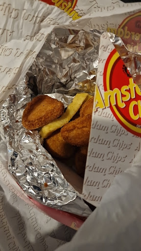 We were just having a family stroll down the street and my son saw the Amsterdam chips place and asked to try them. It was just a small shop front which wasn’t busy. We choose the small size which I think was €3! and he asked for the curry ketchup and pita sauce. The sauces tasted nice and the chips were fresh/chrisp and hot but nothing amazing to shout about. Being from England chips are pretty much a normal thing for us and these were just average really. I saw another couple buy a medium size and I wouldn’t of said they had much more than us! The staff didn’t really talk to us but it’s just one of those small shop fronts that you just pay and go...