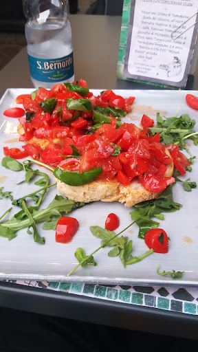 Only if you order something a bit more expensive, you get treated like a normal human being. We went there in hopes of finding a good carbonara which we thought you could find there because there was a spaghetti machine visible through the window. We went in and immediately got served a little cup of alcohol(I'm a minor and still without asking got one pressed into my hand). Then we got seated. It was stressful and noisy. Then we ordered Bruschetta and water after a while because we didn't see any pasta on the menu(they didn't have pasta). The waitress looked annoyed when we ordered that little portion. We got the water and later our bruschetta and the bruschetta was surprisingly good. I actually never really liked tomatoes. But when we were done eating we got more alcoholic drinks. They were bottled and they brought again TWO little cups. I know it might be cool to get these free but they still without asking gave a minor alcohol(I don't look older either). We wanted to pay and it took so long to get a waitress's attention. We just got let go and they didn't even thank us for the 2,50€(we had to originally pay 12,50€) tip while we weren't even treated well. And something else to mention is they didn't even had a menu...