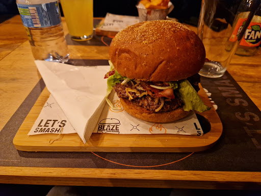 Read moreVolendo mangiare un hamburger con i miei amici mi sono imbattuto in questo locale a due passi dal cuore pulsante di Torino. Il locale non è grandissimo e noi abbiamo mangiato nel piccolo dehor antistante. C'è pure una sala al piano inferiore ma non l'ho vista, quindi non posso valutarla. Il personale è giovane e molto gentile. Si sono premurati più volte di chiederci se tutto andasse bene. I piatti principali sono hamburger (Angus, pollo o vegano) dentro pane molto soffice e conditi con varie salse e ingredienti come bacon, cipolla, insalata, etc. La vera particolarità di questi hamburger è il tipo di cottura, che ad essere sincero non conoscevo ma di cui mi sono informato. Lo "Smashing" è una tecnica che ha preso piede negli Stati Uniti a partire dagli anni '20 del novecento. Prevede l'utilizzo di una polpetta di carne che deve essere letteralmente schiacciata per un tempo prestabilito sulla piastra calda. A seguito di una reazione chimica nota come reazione di Maillard si forma una crosta saporita e uniforme sulla carne. Nonostante la perdita di una parte dei succhi, la carne non secca. Ne risulta un prodotto con un sapore molto buono e intenso. Cosa fondamentale in questa tecnica è che la materia prima deve essere fresca, al contrario degli hamburger classici che vengono normalmente congelati per una maggiore comodità. Questo è il motivo principale per cui lo smashing è stato via via abbandonato. Tornando al Blaze, il menù è abbastanza ricco. Si possono scegliere hamburger singoli, doppi o tripli a seconda della fame che si ha. A completamento è possibile scegliere alcuni contorni come patatine, anello di cipolla, nuggets. C'è anche la possibilità di chiedere ribs o picanha se si preferisce. Per un pasto completo esiste una "combo" che ad un prezzo fisso prevede un hamburger, patatine e una bevanda. Da bere propongono varie bibite e birre. E per gli amanti degli aperitivi è possibile ordinare spritz con vari appetizer. In conclusione ho apprezzato molto gli hamburger (personalmente ho scelto una combo con l' I Atomic smashed). Ingredienti di qualità e carne effettivamente molto saporita. Uno dei miei amici ha fatto il bis tanto per capirci :) Ho pagato in tutto meno di 20 euro, prezzo che reputo adeguato. Al momento metto 4 stelle solo perché a mio parere il locale è veramente piccolino. Tornerò sicuramente per provare...
