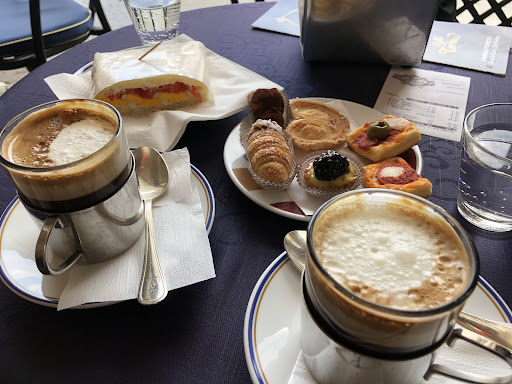 Read moreWe just visited this place to have a little snack. When we came in, a lady asked us if we want to eat. I said yes and she showed us a place. After being seated I asked for an English menue. They don't have that. Prices are at the upper middle range (Spaghetti something 25 EUR) and therefore I wanted to know what I order. The waiter said, that he can explain, what he did very briefly (pasta, fish, meat, salat - gone)... Thanks, that's what I understood already. We wanted to have a plate with different finger foot, as we saw while entering. I asked for that and suddenly things changed my wife and I felt really uncomfortable because we made a "really big mistake" sitting there. Thus we went over to the other part of the place after we where told to sit (in a not so friendly way). Because it was raining and we needed a short rest we ordered two cappuccino for 5,50 EUR each. In the morning and later afternoon we had one for 1,20 EUR and both times with friendly service. We won't come back. This ist one of this places where the stuff treats you better if you walk in with a suit. But unfortunately we don't wear that...