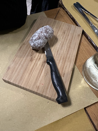 Read moreUna piovosa sera di Aprile, dopo aver girato tutta torino nella pioggia, io e la mia amica ci siamo ritrovate alle 9 e mezzo senza niente nel frigo. Abbiamo deciso, allora, di prenotare un tavolo a Cantinone S. Paolo vista la vicinanza con la nostra abitazione. Ci ha risposto una gentilissima signora dicendoci che poteva ospitarci anche ad un orario così tardo. Non vi fate spaventare dalla porta di ingresso, che potrebbe ai più schizzinosi non sembrare abbastanza elegante, il posto dentro è veramente accogliente. Al nostro ingresso, ci è stata data una buonissima salsiccia da antipasto, questa era intera. Abbiamo ordinato 4 piatti tipici piemontesi: il vitello tonnato, le acciughe in bagnato, i plin e la carne cruda e abbiamo trovato tutto veramente delizioso. Infine, abbiamo terminato la cena con un Bonet da condividere. La signora, forse la proprietaria, è stata tanto gentile da darci due fette. Il conto,...