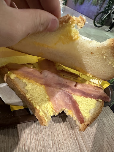 E poi il prezzo. 7,20€. Un costo che aveva alimentato le mie aspettative, facendomi credere che avrei assaporato qualcosa di speciale. Ogni morso era una conferma della delusione. Speravo di trovare qualcosa di più, magari una traccia di formaggio, una foglia di lattuga, una fetta di pomodoro. Ma niente. Solo due strisce di bacon solitarie e qualche frammento d’uovo, persi tra le fette di pane. Era come se mi fossi innamorato di un'idea, solo per scoprire che la realtà era infinitamente più povera e arida.