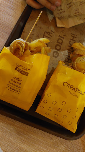 Read moreDomenica pomeriggio a Lingotto, per la prima volta ho mangiato un toast da Capatoast (consigliato da mia figlia che va sempre in centro). Devo dire che l'unica cosa positiva è stato il ragazzo che stava pulendo i tavoli e per terra, che ci ha sorriso gentilmente. La commessa coi capelli colorati era molto scocciata e ci ha fatto un pessimo toast bruciacchiato in centro e bianco ai lati, interno freddissimo (ho preso un toast vegetariano) , in tutto il periodo che siamo stati lì non ha mai sorriso se non ad una sua amica che è venuta a salutarla. Non prenderò mai più un toast da loro. Io ho un bar e per me la gentilezza è la base di ogni rapporto soprattutto se di fronte ho...