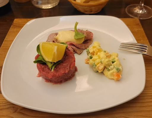 Read more Ho recentemente cenato in questo ristorante e devo dire che ci sono alcuni aspetti positivi ma anche alcuni negativi da considerare. Iniziamo con i punti positivi: lo zabaione era davvero delizioso e la cameriera era molto volenterosa, anche se i tempi di servizio erano un po' lunghi, poverina era da sola a servire tutti i tavoli .