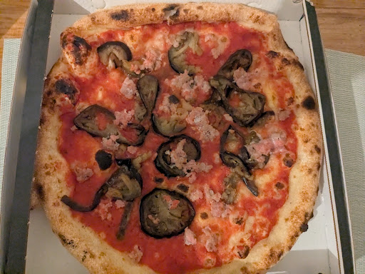 Read moreEsperienza abbastanza positiva: in un sabato sera, momento in cui proverbialmente risulta impossibile trovare posti liberi senza aver prenotato con largo anticipo, ho avuto il piacere di scoprire, nel cuore di un quartiere addossato al centro (Borgo Rossini) e sempre più in fase di arricchimento un locale davvero molto originale. Una rivisitazione a tutti gli effetti di un set cinematografico con locandine di film riprodotte e sedie pieghevoli da regista. Luci professionali ancorate a strutture metalliche nel soffitto completano doviziosamente gli arredi a tema. In realtà, una pizzeria (d’asporto) in cui nonostante fossi abbastanza stretto con i tempi abbiamo avuto modo di apprezzare delle buone pizze, giustamente “autografate” con nomi dei registi più influenti nella storia del cinema. In mezzo agli elogi, l’esortazione a fare ancora meglio: sarebbe bene che si rinunciasse a piatti e posate in plastica in favore di materiali più duraturi nonostante la vocazione del locale sia giustamente quella di una pizzeria striminzita destinata...