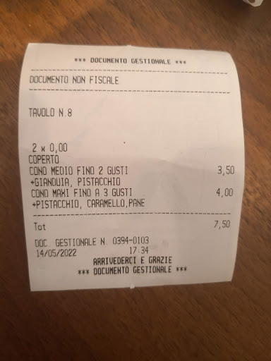 Cliente abbastanza abituale. Sono andata un sabato di maggio a prendere un gelato, (eravamo in due) e alla cassa chiedo come sempre se ci fosse lo sconto da studente universitario. Mi viene detto che o applicavo lo sconto e non mi sedevo, o mi sedevo in quanto c'era il servizio al tavolo; peccato che non abbiano specificato che ci sarebbe stato un ulteriore supplemento, ma da come era stato detto, sembrava che quello sconto che non veniva fatto, avrebbe compensato con il servizio al tavolo. Dunque ci sediamo, chiedono che gelati volessimo e ce li portano chiedendoci i soldi. Totale €7,50: 0,50 centesimi in più a testa, per aver portato due gelati a un tavolo, cosa che come sempre, avremmo preso noi e ci saremmo sedute senza far portare nulla. Lo trovo assurdo, anche perché non c'è MAI stata questa cosa, in quanto non era la prima volta che andavo da Cioccolati italiani. Non sono di certo i 50 centesimi a renderci più ricchi, ma si tratta di correttezza e chiarezza: bastava dire "se lo portate via pagate come da menu, altrimenti se vi sedete sono 0,50 centesimi in più a testa." Noi oltretutto non avevamo capito al momento del conto, perché sullo scontrino risultava aumentato il gelato di 0,50 euro a testa. Al che ci dirigiamo alla cassa a chiedere, e ci viene detto che quello era il costo del servizio al tavolo. Allego foto dello scontrino e del menu, come si può notare il gelato 3 gusti costava €3,50 e non €4, e quello 2 gusti €3,00 e non €3,50. Peccato. Il gelato comunque...