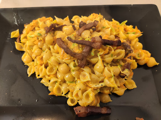 Precisiamo allora quello che ho mangiato: Pasta all'arrabbiata: sugo acido e di sapore pessimo ( tra l'altro nemmeno piccante) pasta scadente e scotta. Ce ne vuole per sbagliare un piatto così. Petto di pollo alla piastra con patate: probabilmente 250/300 g di petto di pollo, pagato 4.50 € (E già potremmo aprire una grande parentesi sulla qualità del prodotto soltanto a giudicare dal rapporto quantità/prezzo. Mai mangiato petto di pollo così difficile da masticare, probabilmente data la scarsa qualità del prodotto. Patate al forno rinsecchite e dure da mangiare (probabilmente erano vecchie di qualche giorno). Sbagliare un piatto così ce ne vuole. Insalata di pasta: un accozzaglia di roba di sapore pessimo in pieno stile 'fammi svuotare il frigorifero prima di andare in vacanza'...tralasciando la qualità dei prodotti, qui davvero è difficile dare un giudizio, in quanto il piatto proposto non è 'pensato'. Crocchette/bocconcini di pollo: il pollo DURO, nervoso e senza sapore.. probabilmente il prodotto era congelato o peggio ancora vecchio. Il pollo è un elemento costante nei piatti proposti, dunque questo giudizio può facilmente essere esteso ad altri piatti. Fusilli con salsiccia: il gusto non era male ma dato probabilmente dalla quantità di elementi grassi presenti nel piatto (olio, salsiccia, burro?). La pasta era condita anche con una verdura molliccia e bisunta, non identificata! Ancora una volta la pasta utilizzata era di pessima qualità.