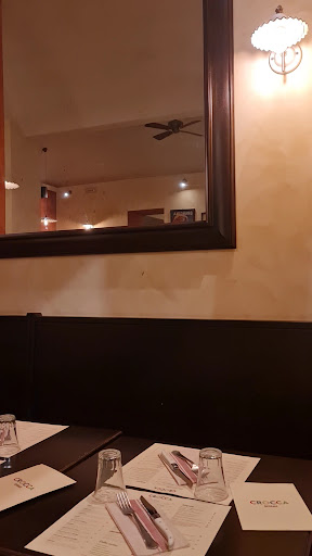 Read moreMi piace la pizza sottile....ma questa raggiunge la sufficienza. Parto dall'impasto.....ok x il sottile, ma questa pizza appena te la servono, un minuto dopo è dura, poco invitante, ho fatto fatica a finirla, nonostante la quantità minima di impasto/base (con una base/impasto di una pizza normale, a mio avviso, ci fai quasi tre basi di pizza crocca....) Gli ingredienti, direi spolverati, appena sufficienti, io ho preso capocollo e stracciatella....non ho idea del gusto che aveva il capocollo... erano poche fettine, un pochino meglio x la stracciatella che si riusciva vagamente ad identificare sul palato. Il locale carino, decisamente no x le tovaglie e i tovaglioli di carta x il tipo di locale e x quello che si vuol mostrare..... I tavoli troppo vicini....i camerieri non riuscivano a servire poiché non c'è spazio sufficiente x passare fra gli stessi, idem x i commensali...che quando concludono il pasto devono fare molta attenzione a non colpire i vicini di posto, noi abbiamo dovuto spostarci con tutta la sedia x far passare. Il prezzo, decisamente eccessivo x ciò che viene offerto....due pizze crocca, una birra media Moretti alla spina, che, in realtà è forse poco più grande di una birra piccola (servita assolutamente non nel classico bicchiere della media!) un coca cola in bottiglietta piccola e un caffè (non pagato xché offerto dalla casa) 45 euro....non è nelle mie corde e a mio parere neanche giustificato dal cibo e dal bere consumato. Nota positiva, la gentilezza dei camerieri, bravi! Peccato, mi aspettavo molto meglio, sono rimasta purtroppo delusa! Non...