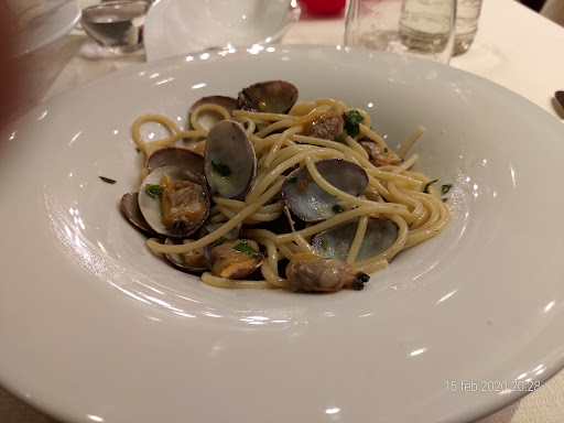 Read moreMAI PIÙ. Peccato non poter dare -1. Tavolo per 4 prenotato alle 21:30. Vengono a prendere l’ordine alle 22, dopo nostro sollecito. Sentiamo i Camerieri che litigano tra di loro davanti a noi (poco professionale). Ci servono il pane, secco. Cominciamo dagli antipasti: antipasto del delfino, non sapeva di niente. Nemmeno un po’ di limone. Tante cozze e totani arrangiati sul piatto. I miei amici hanno apprezzato invece il polpo in crema di patate. I primi,arrivati alle 23: “spaghetti ai frutti di mare” dice il menù. Erano al sugo di pomodoro (non menzionato nel menu), salati. Sapevano di tutto tranne che di mare. Personalmente avanzati. “Paccheri al pesce spada” dice il menù. Erano con lo stesso sugo di pomodoro degli spaghetti, con qualche tocchetto di pesce insapore. Speriamo nel dolce: la cameriera (simpatica) ci propone “affogato con gelato alla crema e cioccolata calda sopra” . Mi faccio tentare. Dopo un altro quarto d’ora, arriva un bicchiere di gelato già sciolto e acquoso con dei pezzettini di cioccolato grattato sopra. Immangiabile. Il mio compagno chiede la cioccolata calda da versare sopra per salvare il salvabile, arriva fredda (e acquosa pure quella). Avanzato anche il gelato. 60€ a persona, non ci vedranno mai più. Non si capiscono le recensioni positive. Solo il locale è...