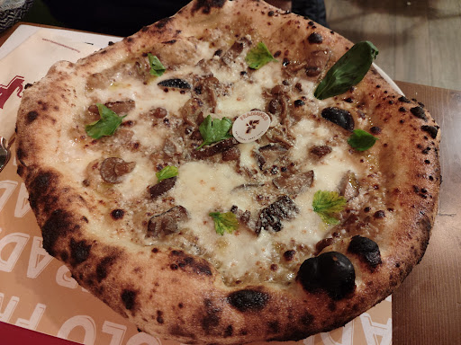 One of the best pizzas I have ever tried. High quality ingredients. The toppings stay on top of the dough because it's not soupy or wet with the tomato sauce. So we really got to enjoy each flavor of each ingredient together with the dough making the experience complete and whole. And if you add their spicy oil, that just makes everything step on another level of goodness. Their tiramisù is a must try if you go there! Creamy, freshly made, not overly sweet but just soooo delectable. Staff was really friendly and nice. All would have been perfect if not for the banging sound of the table and the continuous dropping of things from behind me. But aside from this slight nuisance we would definitely come...