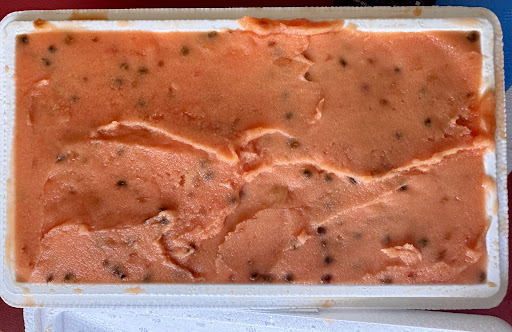 Vittorio produce questo “gelato” (usando acqua e non latte) solo per un breve periodo di tempo perché solo i frutti migliori, a piena maturazione, vengono utilizzati per le sue creazioni artigianali.