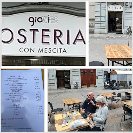 Giò Wine osteria con mescita... già trovare un posto così in zona Crocetta è un caso raro, se poi è pure buono direi che è un caso unico.... D'inverno il posto è veramente piccolo ma in primavera estate c'è un ampio dehor nel controviale di corso duca degli Abruzzi che si fa' apprezzare nonostante i tavoli da birreria e le tovagliette di carta che svolazzano quà e là... Il menù pranzo a 12.50 + vino ha una scelta tra 4 primi e 4 secondi....i gnocchi alla sorrentina erano molto buoni e la Milanese non manca mai... Il barbera sfuso è buono ... 9 euro al litro ... Anche il pagamento con satispay è sempre apprezzato da noi...