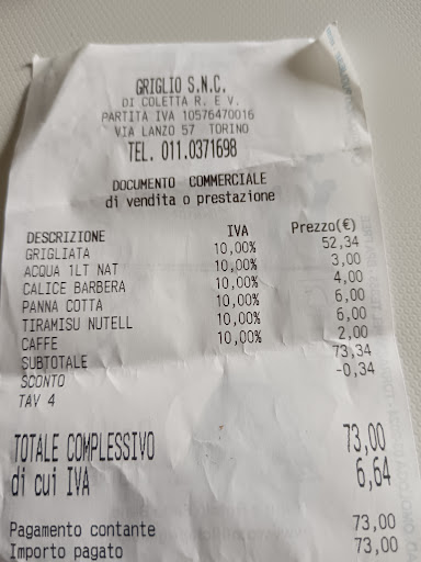 Oggi, a distanza di una settimana dalla nostra cena, vengo nuovamente contattato da un ragazzo di Griglio che mi ricorda del "debito" e mi chiede (perlomeno in modo gentile) come preferisco pagare!