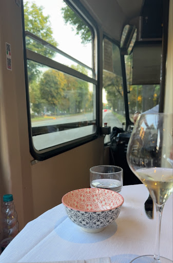 On our first day in Turin the Gusto tram passed by us and so I snapped a picture of the QR code and booked for a Friday night meal. The instructions on the times and meeting point were sent to me 3 days before the booking and it was a very smooth experience to get onto the right tram. The hosts were absolutely brilliant and made sure everyone was seated nicely and accommodated where possible. The menu was fantastic with Russian salad and tonato to start followed by aubergine parmigiana which were all delicious. We were then topped up with more wine and then onto meatballs with creamed potato for the main course. For dessert we were served panna cotta which had an amazing consistency. The atmosphere, service, food and wine were all superb, however with the tram taking diners on a 80 minute tour around the streets of Turin at night was absolutely brilliant. Night time with the lights and a little light rain put a different spin on Turin and made for some amazing photos. Myself and my partner have visited several Michelin star restaurants and high end dining establishments however this was an experience that none of those places could offer. If we ever visit Turin again we will 100% book this experience again. We can’t recommend this enough!...