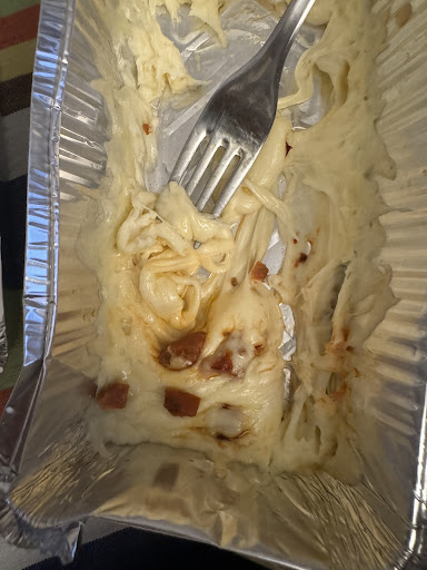 Infine, il cibo che è stato ritirato sotto casa era già freddo, e, nonostante i tentativi di rianimarlo attraverso un trattamento di riscaldamento in forno, ciò che abbiamo ottenuto era pari a ciò che avevamo ritirato: uno scempio.