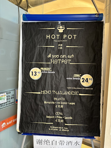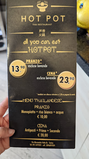 Unli Thai hotpot restaurant in Turin. I went here to eat for the first time with my friends who recommended it to me and so we did and luckily one of the staff or probably the owner let us in even though we didn't know that we had to make a reservation first. I like how they have varieties of soup flavors like seafood, beef, mushroom (which I ordered) ect.. I'm honestly not that crazy with the meat and some of the varieties of food inside the fridge )where you take the dishes that you want to put in your hotpot). Though I think having a variety of sauce is a winner ( I think there were around 10 types). Like I wanted to try all of them but I was so full, because surprisingly it's not only just the food inside the fridge are unlimited but also the refillable soup! I would recommend if you haven't experienced eating hot pot style (yes you have to cook your own food grilled or boiled) It's a fun way to eat and satisfy your hunger. Hope this...