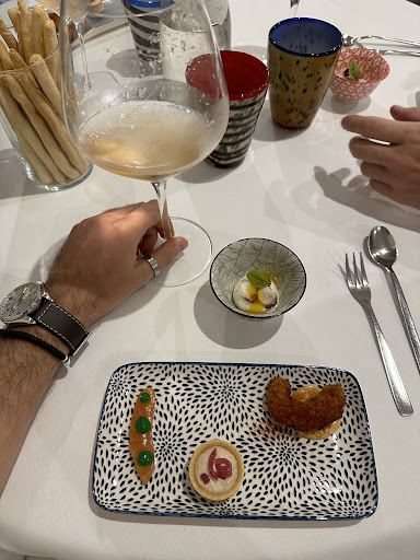 Read moreLa collocazione a pochi passi da piazza Bernini in una via tutt'altro che di passaggio non lascerebbe immaginare che dietro la soglia si presenti un ottimo ristorante con cucina di alto livello. L'atmosfera è formale ma non leziosa, il servizio molto attento ed educato senza mai risultare invadente. Scegliamo il menù degustazione "estro e fantasia", costituito da cinque portate a scelta dello chef (all'inizio viene comunque chiesto se qualche ingrediente non è gradito). Si tratta per lo più di piatti di pesce, in cui materie prime di indubbia qualità vengono composte con fantasia ed esperienza per generare piatti davvero eccezionali. Per il dolce ci viene chiesto se preferiamo sceglierlo alla carta o se continuare a fidarci della creatività dello chef. Visto come ci ha trattati per il resto della cena, la scelta non può che essere per la seconda opzione e anche questa volta lo chef Giuseppe Di Natale si supera. E' quindi un piacere ricevere la sua visita al tavolo poco dopo per uno scambio di battute e i meritatissimi complimenti. Tutto sommato non ci si abbuffa, ma si rimane comunque soddisfatti perché l'esperienza gastronomica merita. I prezzi sono sopra la media (menù "estro e fantasia" a 50 €), ma, almeno per un'occasione particolare, è vivamente...