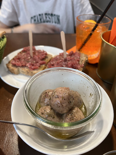 Read moreLocale informale, ma a suo modo stiloso. Eravamo un gruppo di 10+ persone, siamo stati accolti nella saletta al piano di sotto, molto caratteristica e intima, con oggetti vintage disposti “ad arte”.
