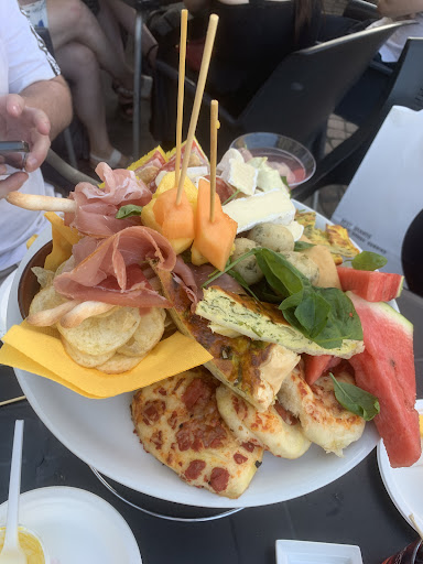 Read moreHad apericena here and it was a lot of variety for an amazing 15 euros including any drink on the menu. I guess junk food is universal there was hash browns, fries, chicken nuggets, gnocchi, olives, pizza, egg thing, tuna sandwich, crab Rangoon sort of thing, prociutto, grissini...etc. drinks were okay, food portion was huge. If you're a college student it's wonderful. Don't come here expecting fine dining for sure. Just a fun atmosphere in a beautiful piazza. We also got the 5€ kids menu that had a great amount of food including a juice (which was already 5€). No high chairs....