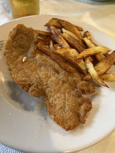 Read moreMenù pranzo: primo, secondo, contorno,1/4 di vino oppure 1/2 di acqua e caffè a 10€.... Prezzo estremamente competitivo. Cucina casalinga, cibi preparati al momento per cui l'attesa è un po' lunga. Ho scelto: spaghetti (aglio, olio e peperoncino) e scaloppine di pollo con patate fritte. Ho bevuto 1/4 di vino bianco ( pessimo) e a fine pasto un caffè pessimo e freddo ( poiché si erano dimenticati di...