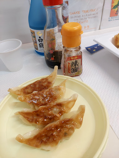 Read moreUn posticino proprio niente male, direi suggestivo. Fondamentalmente è un negozio di alimentari giapponese che appunto offre prodotti tipici nipponici (preparati per ramen, zuppe di miso istantanee in tazza, tofu, dolcetti tipici ecc). Il valore aggiunto però è la cucina nel "retrobottega", gestita dalla fidanzata giapponese del ragazzo che serve la clientela. E' possibile quindi ordinare le pietanze secondo il metodo "take away" (cosa che và per la maggiore) oppure previa prenotazione sedersi al bancone di sinistra e ordinare alla carta ciò che si desidera (il menù è ampio). La conclusione è lieta, il cibo è ottimo (e ho avuto modo di testare le fritture; non un rutto). La nota dolente forse è il conto, a mio avviso leggermente elevato per lo standard del locale ed il servizio offerto. Ma tengo a ripetere, e questa è la cosa più importante, che i piatti sono cucinati in maniera ineccepibile; cosa che fa di questo risto/bar/alimentare una meta culinaria altamente...