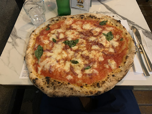 Nearly all their pizzas are made with soybean oil and not olive oil. When I asked about it I was told that soybean oil was better because of the higher smoke point. Hmm, in my experience all really good pizzas are made with EVOO and the smoking point is not an issue - but of course EVOO is a lot more expensive! We ordered a glass of prosecco to have before dinner and the pizza arrived within three minutes of the prosecco, this was much too rushed and in a hurry. But ultimately it didn't matter as we ate outside and within the time from ordering to having our first bite of pizza we had both been bitten over ten times by mosquitoes and it was impossible to enjoy anything. It was really awful. We ended up taking the pizza home and putting it in the oven. Of course, it was a mess especially as the boxes are too small for the pizzas. It was clear that the staff knew about the mosquito issue. I think we should have been advised of that before choosing to sit outside. The pizza was okay, but nothing special. Also we did not like the overpowering taste of the salami in the Calzone which bore no resemblance to other really good Calzone we had had on this trip. The bottle of wine we ordered was expensive in relationship to its quality. All in all Euro 60 spent for a very unpleasant evening. The owner didn't seem bothered by our...