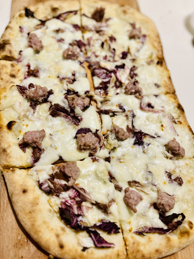 Gustosa: This white pizza comes without the tomato base and instead features mozzarella, Gorgonzola, and sausage. It was also incredibly tasty!!