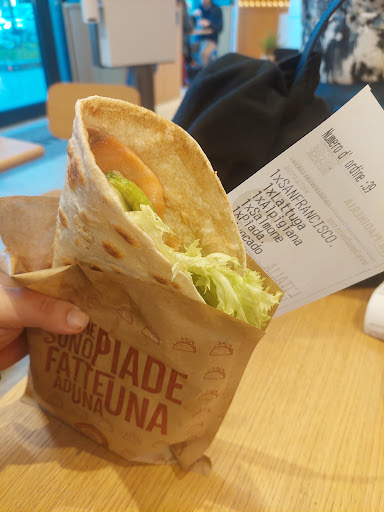 Per uno spuntino veloce,pranzo o merenda, " La Piadineria" è sempre un'ottima soluzione.Con diversi punti vendita sparsi per la città,che fa si che siano presenti in diverse zone.Questo in Piazza Carducci,è molto comodo,e facilmente raggiungibile con la metro,mezzi gtt,o propria autovettura.Il locale dispone di una saletta,molto luminosa e accogliente,ed anche dei posti a sedere,all'esterno,da utilizzare nei mesi più caldi.Consiglio di scaricare l'app,che ha tra i suoi vantaggi di poter ordinare in anticipo,per mangiare in loco,o asporto,o per la consegna a domicilio.L'app dà così la possibilità di saltare la fila,ed inoltre raccogliere punti,via via che si completano delle "missioni",che fanno avanzare di livello,ed ottenere sconti o premi.Il servizio è molto veloce,grazie al personale molto gentile e...