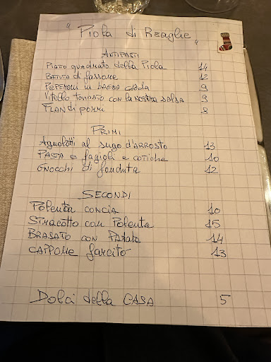 Read morePrima cena con la nuova gestione. Prima nota, ahimè dolente, è sparita l'area all'aperto sotto le frasche che, durante le torride estati, erano certezza di refrigerio. In compenso i tavoli all'aperto sono disposti lungo la facciata. Comodo ma un po' bordo strada; suggerisco l'introduzione di una siepe o simile (anche finta per evitare animaletti vari) per separare un po' dal traffico, che fa molto ambiente cittadino, esattamente ciò che l'avventore tipo rifugge in questo caso. Menù buono, senza grosse sorprese ma dignitoso, seppur un po' limitato nella scelta. Preso antipasti misti (carne cruda, buona; flan di zucchine, buono; insalata russa, ottima; insalatina di pollo, da migliorare), agnolotti al ragù (in alternativa burro e salvia), ottimi e per secondo brasato, ottimo; le patate al forno di contorno da migliorare. Dolci buoni (ottimo il bônet). Prezzi buoni. Per cena completa 27 euro più bevande, noi abbiamo preso antipasti e primo o antipasti e secondo; prezzo finale 25 euro a testa. Personale cordiale, simpatico e attento. Vorrei invitare la gestione a tener conto di necessità particolari, come intolleranze al lattosio (nessun dolce nè frutta fresca adatti) e, non era il nostro caso, i vegani che potrebbero avere qualche problema nella scelta. Comunque positivo...