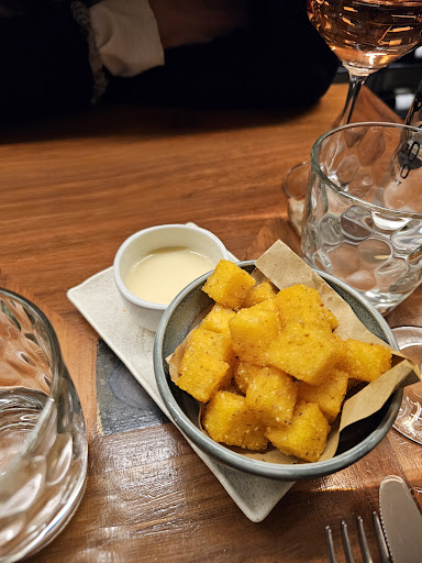 Read moreThis review is about the annex (wine bar), opposite the restaurant. There you may have just appetizers and wines or cocktails. The place is nice and the choice of wines is limited but sufficient. Unfortunately, we found the prices high and the quality of the wines disappointing: Chianti was served to the very last drop of the bottle resulting in getting the sediment in the glass. Vermentino is basic and not flavored. Good potential but they need to...