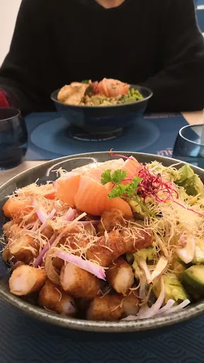 Ottima qualità (ne mangio spesso di poké/sushi, ma questo è davvero buono), anche rapporto qualità prezzo assolutamente soddisfacente (poke “piccolo”, che però è già una porzione più che sufficiente, a mio parare, a 10€). Mi piace un sacco il fatto di poterlo comporre con gli ingredienti che preferisco. Si può scegliere la base (riso bianco, riso venere, farro o insalata, o anche un mix di due di questi) e poi nel poke piccolo sono inclusi una proteina (dal salmone al tofu ad altre mille cose tra cui scegliere), 4 verdure se non ricordo male, un topping (es anacardi o sesamo tostato) e una salsa (es salsa di soia o teryaki). Volendo si possono aggiungere ingredienti con un sovrapprezzo. Il poke medio, che ha due ingredienti “proteina” inclusi, viene 12€ e le porzioni sono maggiori. Il grande non l’ho mai nemmeno considerato, ma c’è :). Locale molto carino, buon servizio. Ogni volta che posso ci faccio un...