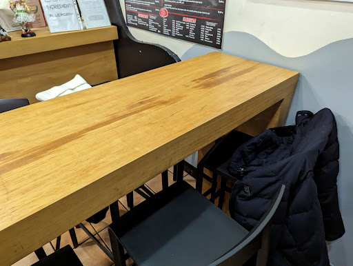 Read moreNon ci sono i bagni, credo sia illegale in quanto ci sono i posti a sedere. Panino nella media, pane e carne un po' asciutti.